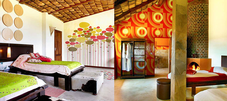 At night the entire 13m (40f) tall building is immersed in golden light creating an intimate, atmosphere. The main building hosts the restaurant and terrace, a cozy lounge with open fireplace, the reception and the “Safari Bar”, constructed of precious Ebony wood. The lodge has 21 spacious garden rooms, 6 Junior-Suites and the Meru Cottage, which is a comfortable option for families with children or couples that travel together. The cottage has a very private location within our topical park. It spreads out over two floors. From the central living room with open fireplace two en-suite bedrooms can be reached: one in the basement one on the 1st floor.