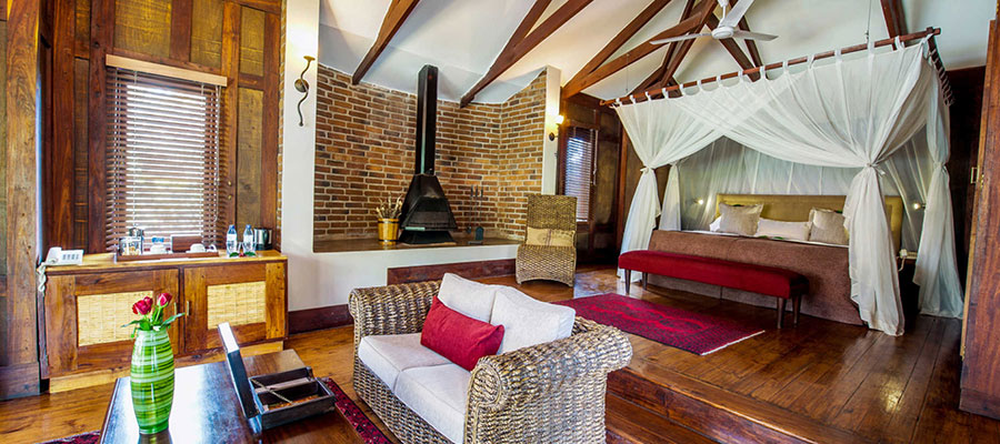 The main entrance and communal areas are really well laid out and, regardless of the weather, offer a cozy log fire, or a quiet and picturesque garden in which to relax and eat some of their great menu. The rooms, similarly, are very well appointed featuring baths and private balconies that look out over the surrounding coffee plants. The interiors have been carefully decorated to run with the luxurious and high quality nature of the lodge and, in our view, it is all pulled of very well.