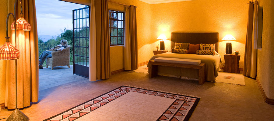 Mahogany springs is one of the new luxury lodges located in the northern section of Bwindi Impenetrable National Park providing clients with an option for accommodation. This unique lodge with a mixture of traditional and international blends has become one of the thought after accommodation by clients. The lodge has been constructed to make a difference with all details put into consideration. Mahogany Springs offers unrivalled service to clients due to the highly trained and professional staff employed at the Lodge. Mahogany Springs is one of the perfect lodges to reside in a night before and after your gorilla trek in the northern section of Bwindi Impenetrable National Park. Some gorilla families frequently and surprisingly visit this lodge so once in a while occupants get to view these gorillas. Mahogany Springs’ close proximity to Bwindi Impenetrable National park allows visitors to participate in activities such as gorilla trekking in Buhoma and Ruhija, with 5 gorilla groups from the Lodge. Mahogany Springs comprises of suites constructed and designed to utilize the surrounding beauty. Each room has large and wide windows to allow for freshening views of the forest and the nearby plantations. All suites/rooms have en suite bathrooms, dressing table and all beds have mosquito nets to protect you from any mosquito bite.