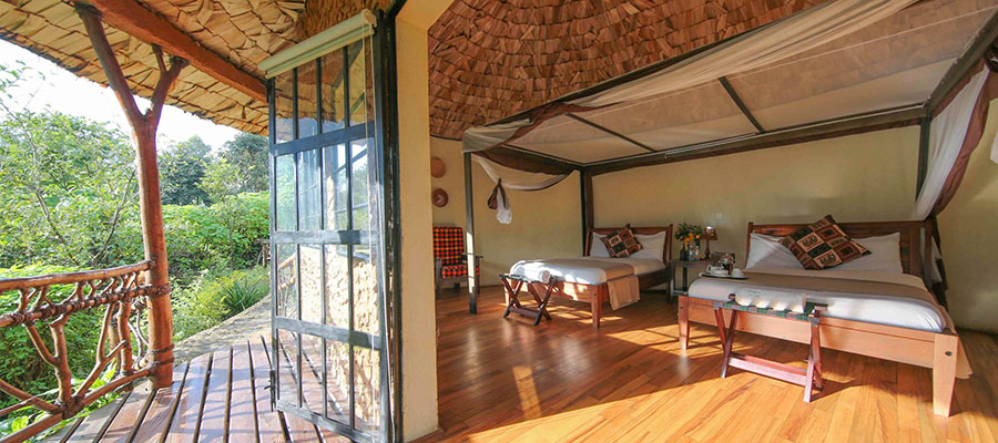 The Gorilla Resort offers luxury in the Impenetrable Bwindi Forest. It comprises of cottages and furnished en-suite African luxury tents provided for you, attractively furnished overlooking the Bwindi Impenetrable Rain forest. The Gorilla Resort is such an amazing safari camp with a magnificent sight of the Bwindi Impenetrable Forest. It’s suited at Buhoma along with Bwindi Impenetrable Gorilla National Park besides the Mountain. The camp is enclosed with lavishness cottages in addition to the East Africa Safari Tents that are positioned on an eminent wooden platform providing a beautiful scenic view of the area. The wooden decks will definitely give you a perfect view of the Bwindi Impenetrable Forest as well as River Munyaga.