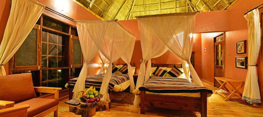 Chimps’ Nest is a right birder’s ecstasy. The lodge margins Kibale Forest on a gorgeous piece of land with a stunning view of Kibale Forest along with the snow capped peaks of Mount Rwenzori. The common areas that visit this place include the monkeys, chimps as well as forest elephants. The lodge is suited adjacent Nyabubale a well known village between Nkingo and Bigodi. It’s just a 15 minutes drive from Kanyanchu the focal point of UWA for chimp tracking as well as other activities in the park. The local foods grown around include pineapple, ginger jam, peanut butter, and honey along with filtered coffee. Chimp’s Nest is established in a natural setting with local materials and solar energy for light. It’s acknowledged to be an eco-friendly lodge. Accommodation features beautiful self contained cottages, tree house in addition to family cottages. The restaurants serve both international and local cuisines with hospitable waitresses. All cottages have privacy with a perfect view of the wildlife such as birds, chimps, elephants, monkeys and Kibale forest at large. Activities carried out include, Chimp tracking, Cultural heritage, Natural trail, Forest walk, Hikes at the slopes of Mount Rwenzori and Bigodi Village walk along with the discovery of the crater Lakes.