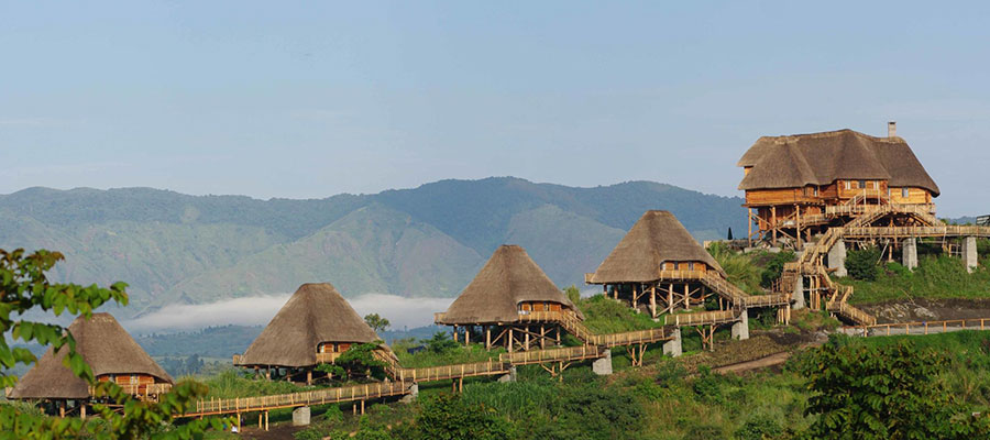 Ndali Lodge is set in a stunning location on the rim an extinct volcano which has now filled with water to become the breathtaking Lake Nyinambuga – 250 acres in size and 130 metres deep. Ndali Lodge is a fantastic traditional colonial lodge set in the stunning crater region of Western Uganda. Built of local stone and thatch, the 8 luxury bandas offer views over the dramatic Rwenzori Mountains and each banda is en-suite with a private veranda. The dining room and lounge offer relaxing views over the crater lake below. This is a great base from where to track the chimpanzees of Kibale Forest. Ndali Lodge does have hot and cold running water however all lighting is by candle or storm lantern! For the more adventurous it is possible to go for an early morning dip in the Crater Lake. The lodge has 8 cottages providing luxurious accommodation for 16 guests and children are welcome in this lodge.