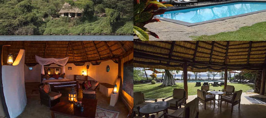 Island Camp Baringo is small, exclusive and remote thus offering a perfect opportunity to escape the humdrum of city life or a change of pace in-between visiting the many National Parks. A chance to relax, recuperate and enjoy the beauty and tranquility of this idyllic island. Activities include Boat Excursions with wildlife and bird guides; Nature walks on “Giraffe Island” Ruko Conservatory and water sports. Conference facilities are also available. Wildlife includes Crocodile, monitor lizard, hippo, giraffe, impala, ostrich, rock hyrax, dwarf, mongoose, a large variety of reptiles, lungfish, tilapia and catfish. There are more 470-bird species.