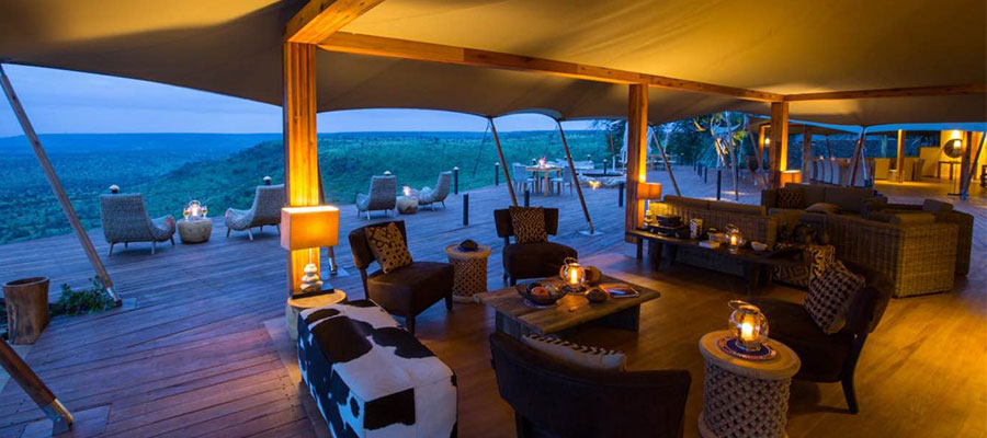 The inviting main areas of Loisaba Tented Camp include a large open dining area, separate open lounge and bar, a large wooden decking area for outside dining, relaxing and enjoying the view, and one of Africa's most picturesque infinity pools.
