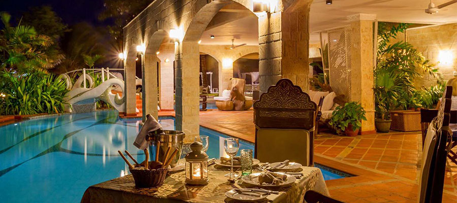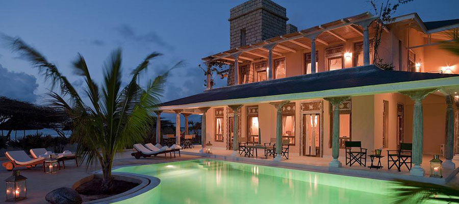 Kizingoni Beach is a luxurious beach house located in a secluded area in Archipelago Lamu, Kenya. The facility is a collection of six exclusive beach villas and six kabanas. The beach villa boasts a lush garden and offers stunning views of the nearby ocean. The house is a walking distance to the beach and 30 minutes’ drive to Lamu Town. The rooms are spacious and designed with thatch roofing. Each room features an en suite bathroom, a flat screen TV with cable service, a minibar, a terrace and a balcony that overlooks the beautiful surroundings. The onsite restaurant serves local and continental meals and guests may request services from a personal chef. Self-catering facilities are also provided. Guests enjoy communal dining above the infinity pool at top deck, with fabulous views across the channel and to the Indian Ocean on the other side of the dunes. Recreational activities include water-skiing, windsurfing, kayaking, snorkeling, dhow sailing and fishing. The villa houses a spa and a large outdoor pool, which is flanked by sunbeds and the garden. Airport pickup, babysitting and laundry services attract additional charges. Concierge services and onsite parking are provided without a charge. Security personnel guard the villa. The villa is in close proximity to the local village of Kipungani and Lamu Beach.