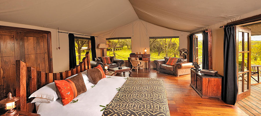 Serengeti Migration Camp is the embodiment of the ‘camp’ experience. Located next to the famous Grumeti River which is home to resident hippos that bark and wallow their days away, Serengeti Migration Camp has become synonymous with low-impact high-action game viewing in a landscape that is untouched since the dawn of time. Hidden among the rocky outcrops Serengeti Migration Camp is located at the starting point of the Migration. Comprising of 20 luxurious elevated tents, each with spacious and richly furnished bedrooms, Serengeti Migration Camp blends seamlessly into the environment. Each of the tents is surrounded by its own 360-degree verandah deck, which in turn creates your very own private sanctuary to enjoy the constant game sightings and the ever-present sounds of the bush. The main 'tent' has a split-level lounge, a swimming pool, restaurant and viewing platforms that offer views across the river and the rugged landscape beyond. But it is the drama and proximity of the wild, which takes the experience of this camp to an altogether higher level. Whether it is walking safaris with experienced and highly knowledgeable guides or the sensation of being as close to nature’s daily fight for survival, the sensory feast that accompanies any visit to Serengeti Migration Camp will no doubt rival anything experienced before.