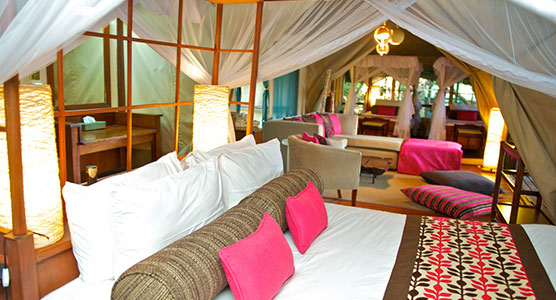 The camp consists of 10 cottages built of lava stone and the thatched makuti roof adds glamour and style to its contemporary African ambience. Every cottage is surrounded by indigenous trees that provide a relaxed atmosphere as you listen to the African night sounds of a night roar or the laughter of the hyena in the distance.